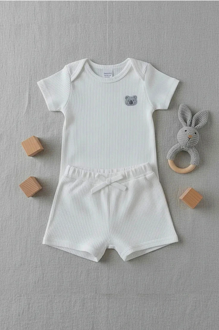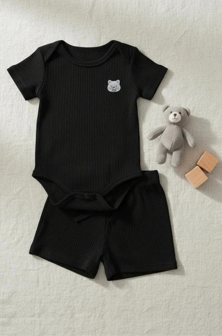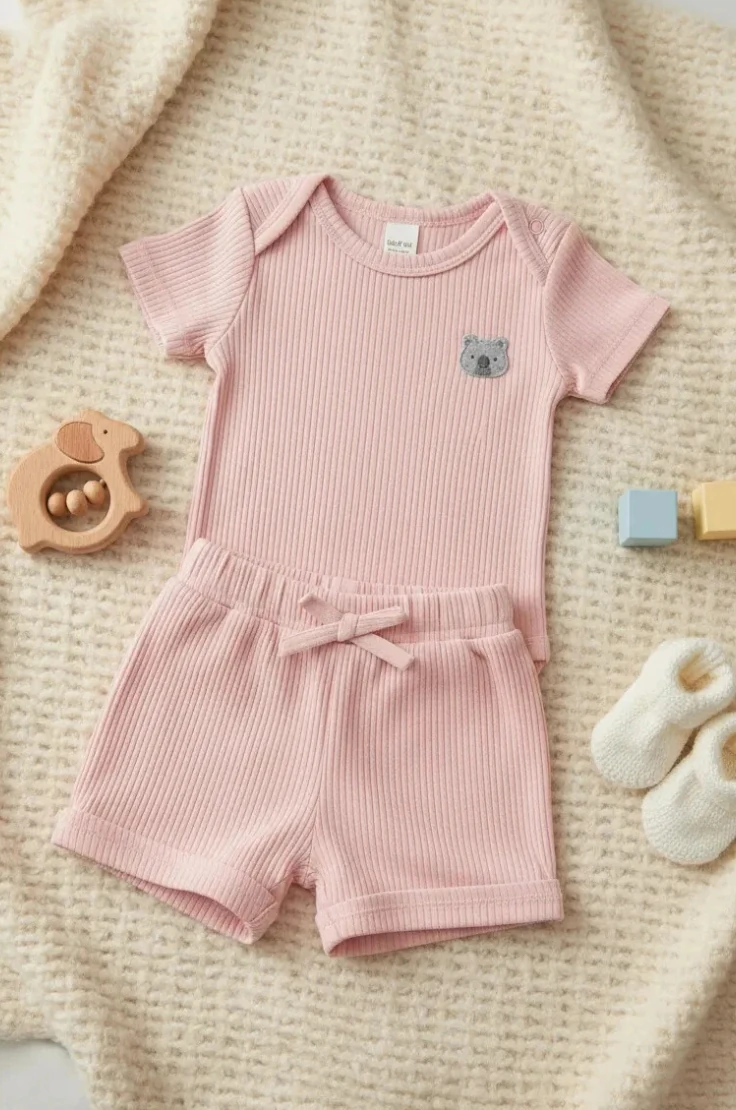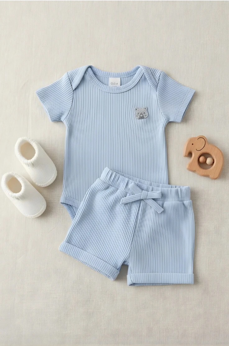 Tecido Canelado Premium: A estrutura em relevo do tecido permite que a peça estique naturalmente, acompanhando o crescimento e os movimentos do bebê.